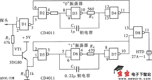用门电路组成的发声型逻辑笔(CD4011)