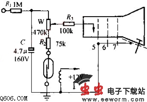 如图是一种关电视机用干簧管消亮点电路。在亮度电位器W接地端串联一只干簧管,电视机正常收看时,干簧管触点闭合,电容器C充电电压约为160V。关机时,干簧管触点断开,由于C的容量较大,而且它的主要放电支路已切断,从而使显像管阴极电压将保留一段时间,以截止电子束,达到消亮点的目的。干簧管外面应加绕一个线圈,线圈用0.1MM漆包在内架上密绕5200匝,线圈一端接地,另端接电源+12V。