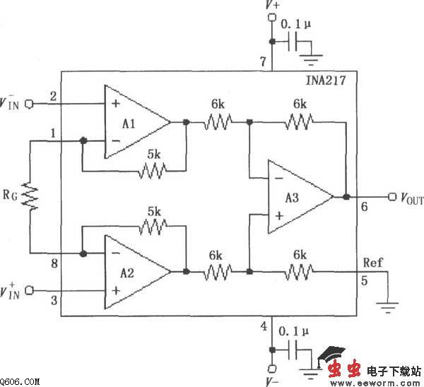 INA217信号和电源的基本连接电路图