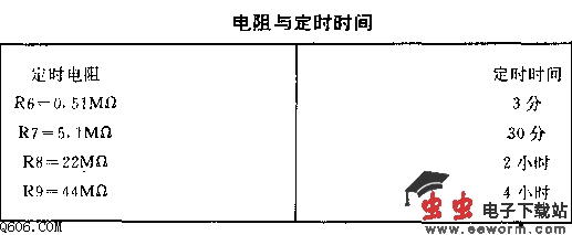 调节电位器RP.可调准A的②端基准电位。电源部分不用变压器而用电容降压供电。电路形式简单、成本低、体积小、不发热。电阻Rl为电容c1提供泄放电流回路。定时时间可参考表。