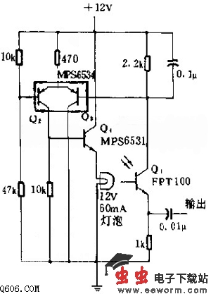 如图所示。本电路利用光线给光电晶体管Q1加偏置,以改善响应时间,并且获得最大的光敏灵敏度。