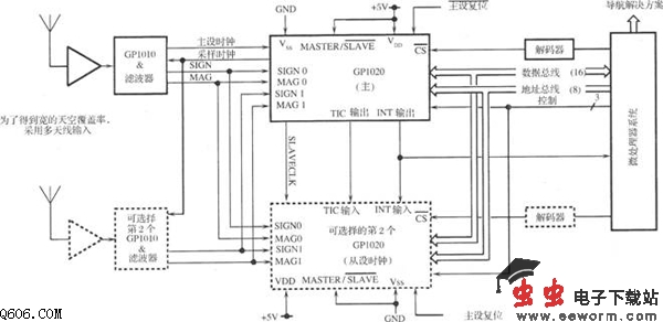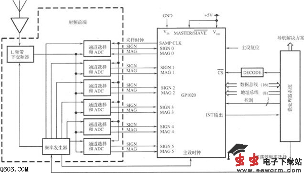 GPl020是一个6信道CMOS数字相关器,可以与GPl010 L1信道下变频器或其他集成电路组合,用来截获和跟踪GPS C/A码或GLONASS码。GPl020 6个信道中的每一个通道,都包括:独立的数字下变频到基带处理的电路、C/A代码发生器、相关器和累加转存寄存器。 GPl020通过一个16位数据总线与一个微处理器接口,使用不同的片上寄存器控制采集和跟踪过程。输入多路复用器适合多种GPS前端和GLONASS前端,允许天线有差异。电源电压5v,功耗小于500mW,采用120L MQFP封装,封装尺寸28mm×28mm×3.4mm,适合GPS或 GLONASS导航系统、高集成度的GPS接收机、GPS测量接收机、GPS时间基准等应用。