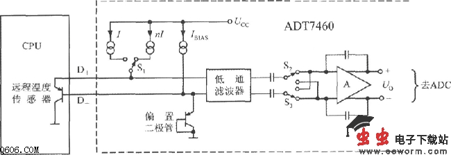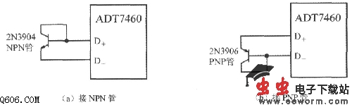 ,利用晶体管发射结电压(UBE)与温度成正比的特性来测量远程温度