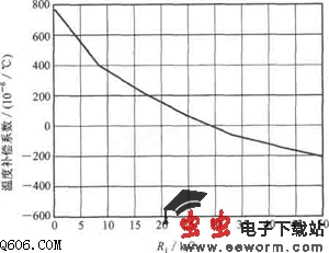 零点被偏置在UCC/2上;③能对-500×10-6/℃以下的低温度系数进行补偿。双极性模式下R1的电阻值与温度补偿系数的关系曲线如下图所示。