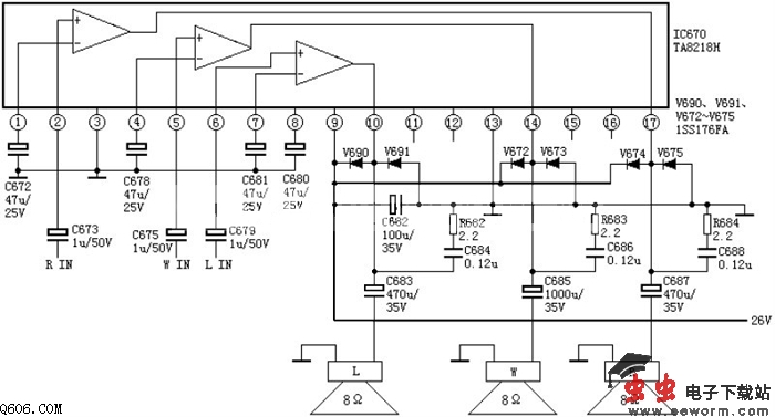 如图所示是彩色电视机常用伴音电路,TA8218AH引脚功能及参考电压: