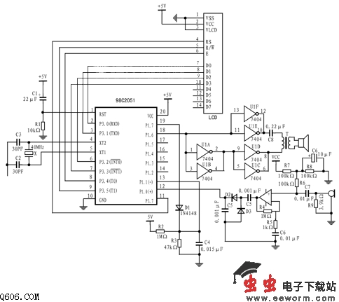 ,在对放大后的信号进行检波后将检测回波送到比较器的正输入端。发射时P1.7输出的电平可以抑制比较器的翻转,这样就可以抑制