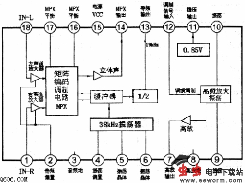 本系统使用1.5V电压,所以用红发光二极管LED作为稳压管,又可兼作工作指示灯。 元件的选用:电容C要求漏电小;12V稳压管的采用是为防止强脉冲来电。保护场效应管而设;IOM电阻是为了在电视机关掉以后,转播系统能在10秒钟后自动切断电源。如不用该电阻。会在相当长的时间后自动切断.这样会多费电能。