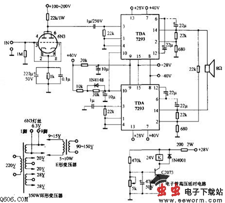 制作时两声道的2只6N3可用一块合适的铝合金板打孔安装管座,然后固定在机箱内。由于6N3外围元件较少,可采用搭棚焊。6N3所需屏极高压电源可用一只普通的E形变压器,将次级接到主功放变压器次级合适的电压绕组上。采用在主功放环形变压器上穿绕6.3V灯丝电压绕组,一边供6N3灯丝使用,一边供给E形变压器得到6N3所需屏极电压。