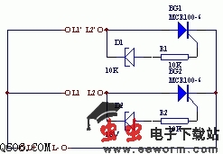 BG1,BG2为MCR100-6等小型单向可控硅,原则上反向击穿电压大于100V即可。D1,D2为18V的稳压二极管。整个电路可装入电话接线盒内。