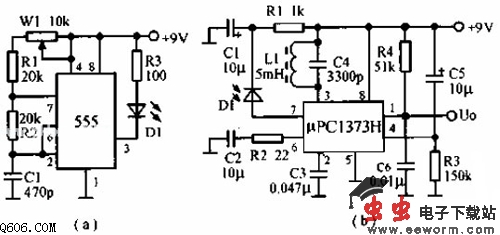 采用红外接收、译码电路的遥控开关电路μPC1373H的红外遥控开关电路如图所示,发射电路由555接成的无稳态多谐振荡器构成。振荡频率在38KHz左右。接收电路采用专用红外接收、译码集成电路μPC1373H,其内部设有自动亮度控制电路(ARC),对于强度不一,频率相符的红外信号,均能作出准确反应。此时,输出端由高电平变为低电平,从而控制执行电路。