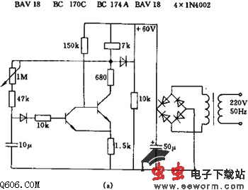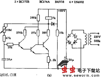 图a电路中有两级电路结构,其定时时间约为0.5~12s,图b有点~160s范围的定时时间。