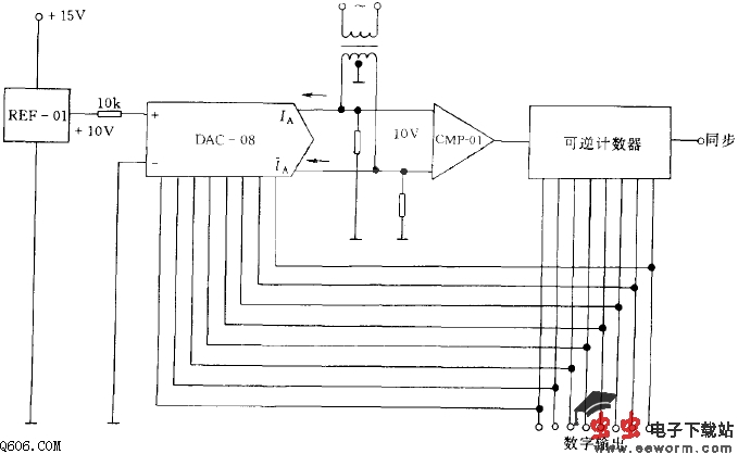 如图电路中数-模转换器DAC-08输出端接直流输入电压则构成一个典型的模-数转换器,这里输入的是交流电压,可检测和发现电网电压脱落或降落,并用输出数字显示出来。