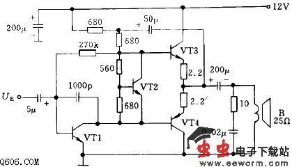 如图过载保护电路功率为650mW,电源电压12V,扬声器25欧。部分元件规格:VT1:晶体管NB111EH/J VT2:晶体管:NR001E VT3:晶体管NA11EB/J VT4:晶体管NA12EB/J