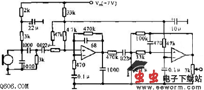 CX9800机型的手机和台机都选用了性能优良的语音处理电路,对话筒信号的幅度和带宽进行了压缩,提高了话筒灵敏度和话筒对距离的适应性。第一级为限幅放大器,第二级为有源滤波器。在话筒与放大器之间插入了高通RC滤波器,对放大器输入信号进行预加重;接收电路中在鉴频输出电路中进行去加重,可以改善话音信号的信噪比。手机的放大器选用4558,台机选用两片单运放电路,型号为741.