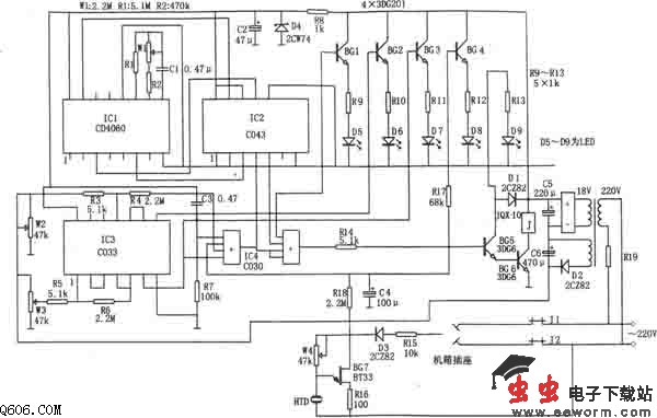 以上电路的输出信号均经IC4整形后使继电器吸合,相应切断电路电源。