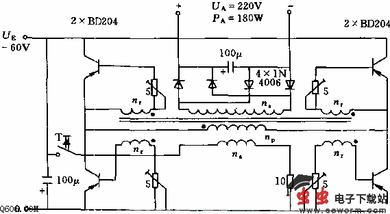 变压器数据:绕组np=74匝,1.5mm铜漆包线;nr=6匝,0.5mm铜漆包线;n9=355匝,0.7mm铜漆包线;nb=74匝,0.5mm铜漆包线。