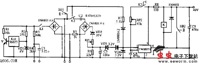 该录音电话控制器,抗干扰能力强,可避免一些误触发情况。当有电话打进来,响铃六次无人接后,此装置模拟电话自动摘机,接通语言电路,并发出语言“您好,主人不在,请简短留言”,同时接通录音机电源,录下对方留言的具体内容。
