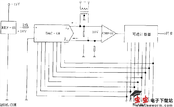 如图电路中数-模转换器DAC-08输出端接直流输入电压则构成一个典型的模-数转换器,但这里输入的是交流电压,可检测和发现电网电压脱落或降落,并用输出数字显示出来。