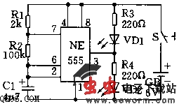 以555电路为核心的闪光电路图