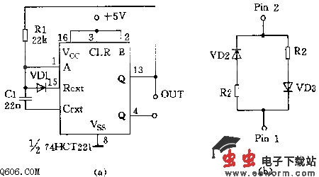 占空比可变的单稳态多谐振荡器电路图