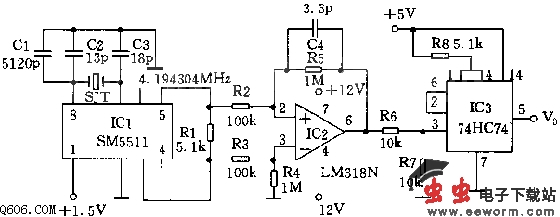 在数字电路中常常需要用精确的秒脉冲信号来对检测的信号进行采样取值。实际中多采用高频振荡器产生高频信号,然后经多级分频电路得到。这里介绍一种利用高频石英钟集成电路SM5511产生精确的秒脉冲的电路。