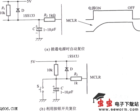 图a是接通电源时自动复位。图b是利用按钮开关复位。