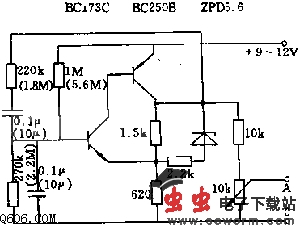 频率在10Hz以下的振荡器采用RC振荡器是很适合的。这里采用齐纳二极管来稳定输出幅度,输出的峰-峰电压可在0~4V间调整,频率为6.5Hz。如采用图中括弧内的数值,频率可低至0.01Hz。振荡器吸取的电流约为3mA。