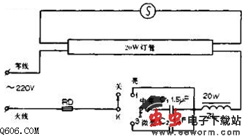 采用串联电容的方法能方便地控制日光灯的亮度,适应不同的照明要求。如图是改装后的线路图,当开关与“1”接触,灯管发出正常亮度,实际功率20W;与“2”接触,亮度中等,功率约10W左右;与“3”接触,亮度微弱,功率约5W左右。