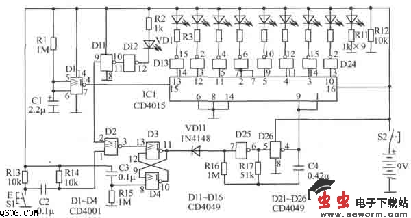 人体反应速度测试器电路图