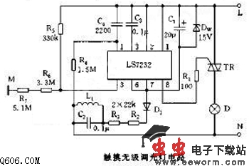 为证实上述分析又做了一个实验,将灯具放到一个干净的玻璃板上使用,结果一切正常。因此,此调光灯是由于灯控电路的触发灵敏度调得太高,使其适用范围变窄。在特定的环境条件下产生失控。为解决这一问题,可用两只电阻(5.1M欧和2M欧)串入触摸控制极,将触发灵敏度调小,解决了失控问题。