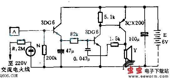 本报警电路可用在弹子门锁或其他需要报警的设备上,当人体碰一下触摸电极,它就会发出持续时间7s以上的报警声。