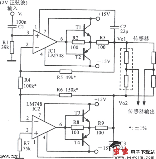 交流电桥对称激励电路图