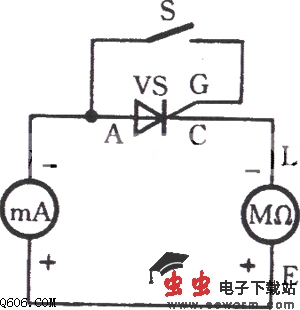 用兆欧表检查晶闸管的触发能力如图为用兆欧表检查晶闸管的触发能力电路图: