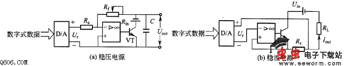 数字式稳压电源和稳流电源的原理电路图如图所示:
