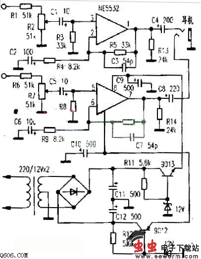 NE5532 一般用作前置放大,性能甚佳。现在用来做小功率放大,让我们来看看其效果如何。