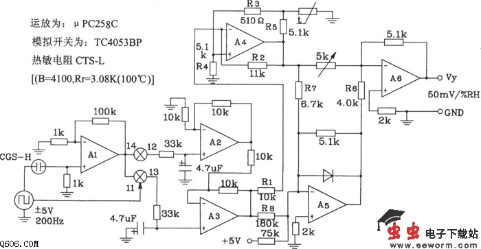 陶瓷湿度传感器检测电路图