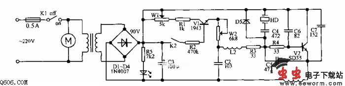 调节W1、W2可改变振荡的幅度,从而调节喷雾量。M为风扇用于散热。