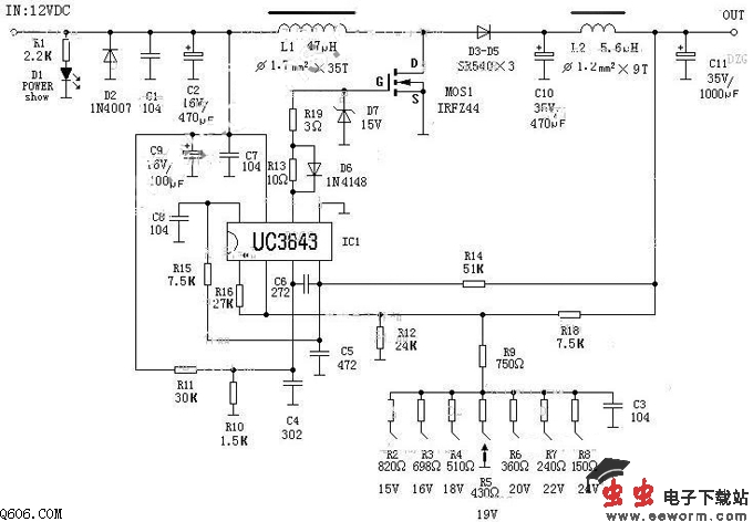 改变一下电阻,即可改变成15V、16V、18V、20V、22V、24V等不同类型电压值。