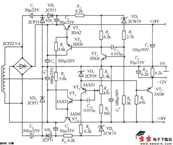 双18V双极性稳压电源电路图