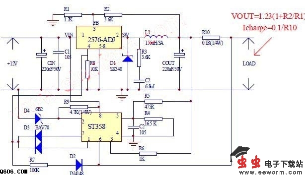 用2576+358+稳压管的方案电路原理图