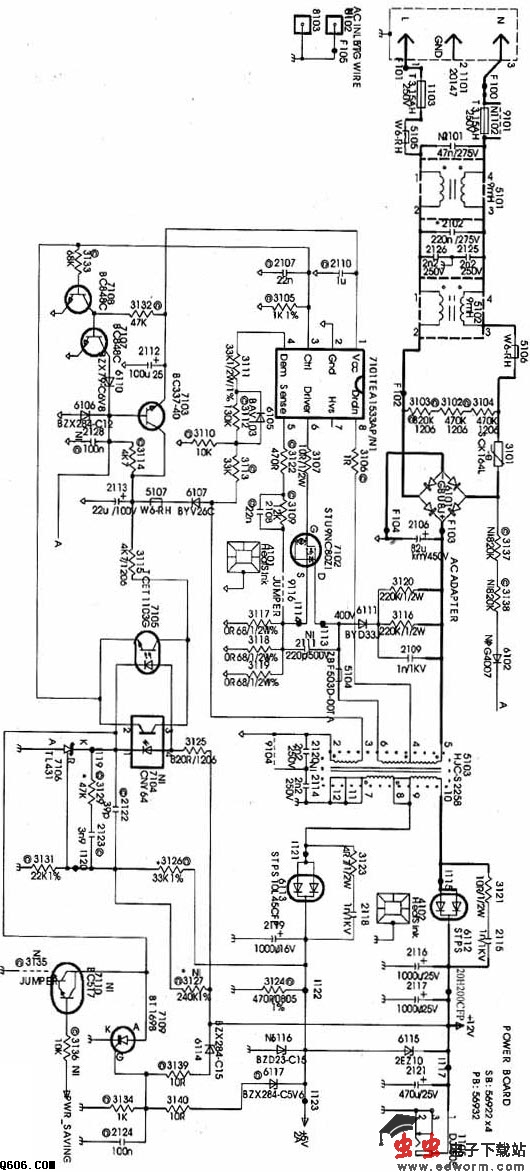 PHILIPS(飞利浦)170B4液晶显示器开关电源以7101(TEA1533)为核心构成,有关电路如图所示。