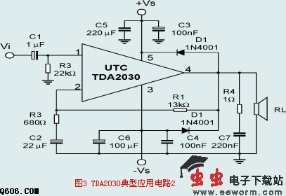 虽然TDA2030所需的元件很少,但所选的元件必须是品质有保障的元件。