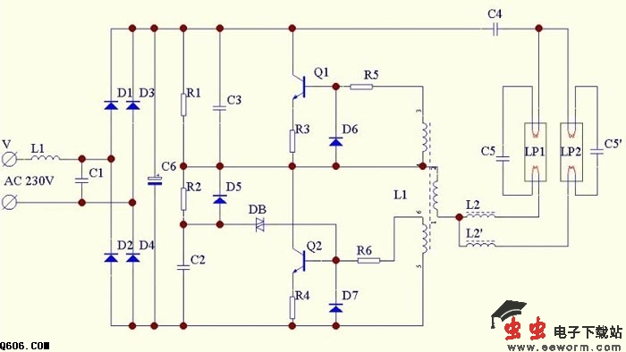 双管节能灯电子镇流器电路是家中常用的照明工具。