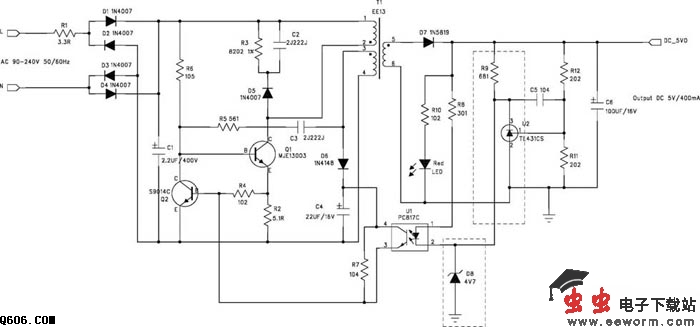 5V/400mA 开关电源电路图