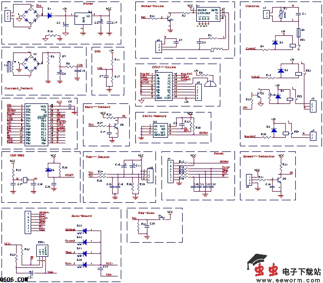硬件电路如图1所示。根据工作电压的不同,整个系统可以分为三部分:微控系统、继电器控制和强电控制,分别工作于DC5V、DC12V和AC220V。