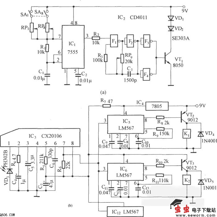 实用八通道红外遥控电路