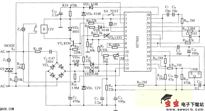 HT7605控制可控硅应用电路。