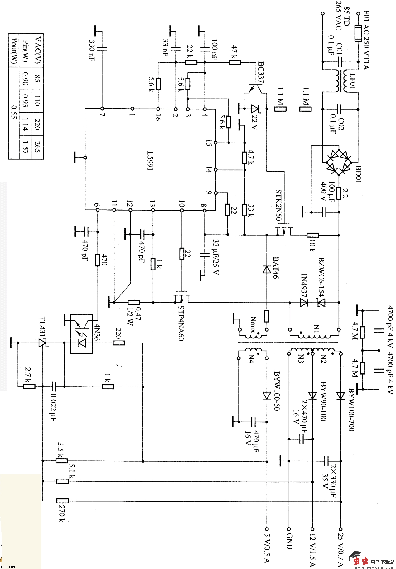 L5991 40W喷墨打印机电源中的应用电路图