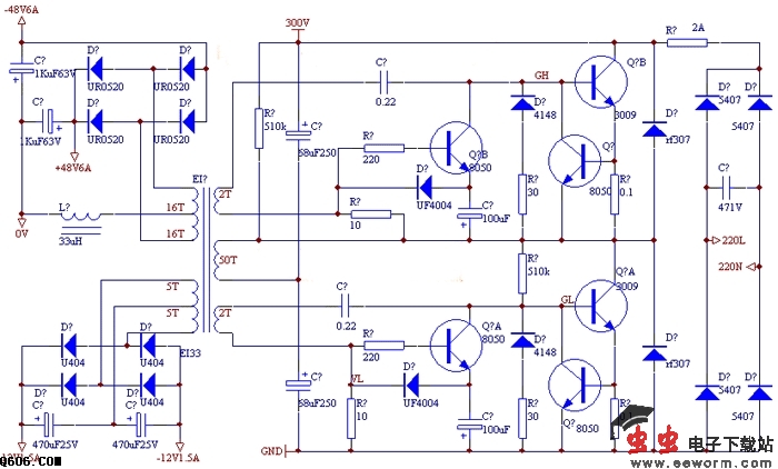 3、 D5、D6、D9、D10要选取恢复时间短的二极管