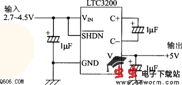LTC3200的升压电路,SHDN端是shotdown的简写,当该端连接电源端Vin时,从Vout输出5V电压,连接GND时输出为0V。